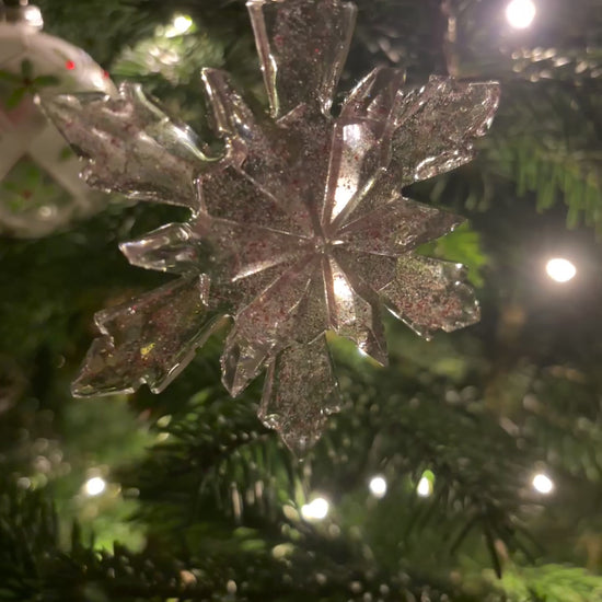 Handmade snowflake from resin and red glitter