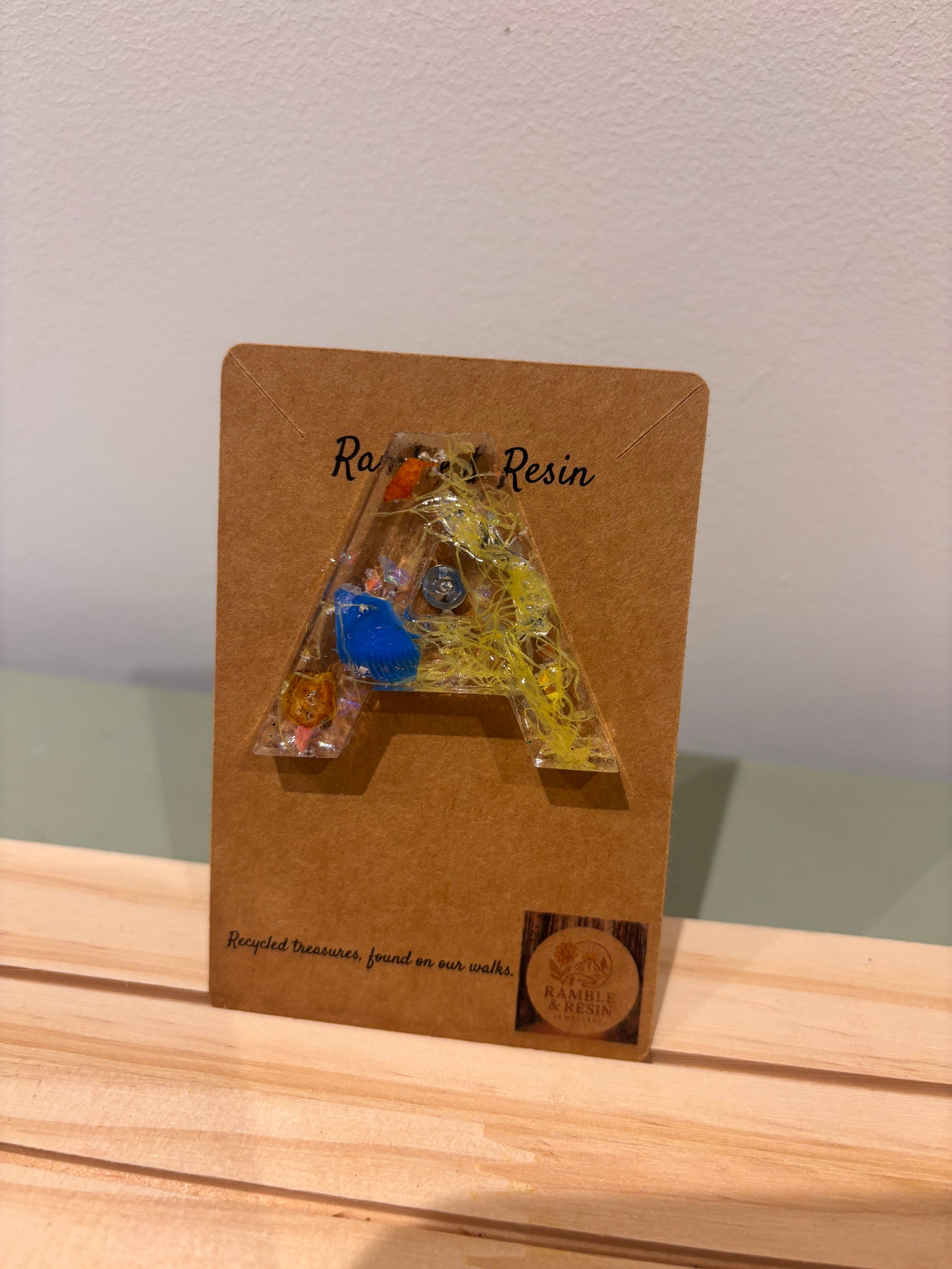 Handmade with resin and recycled materials;