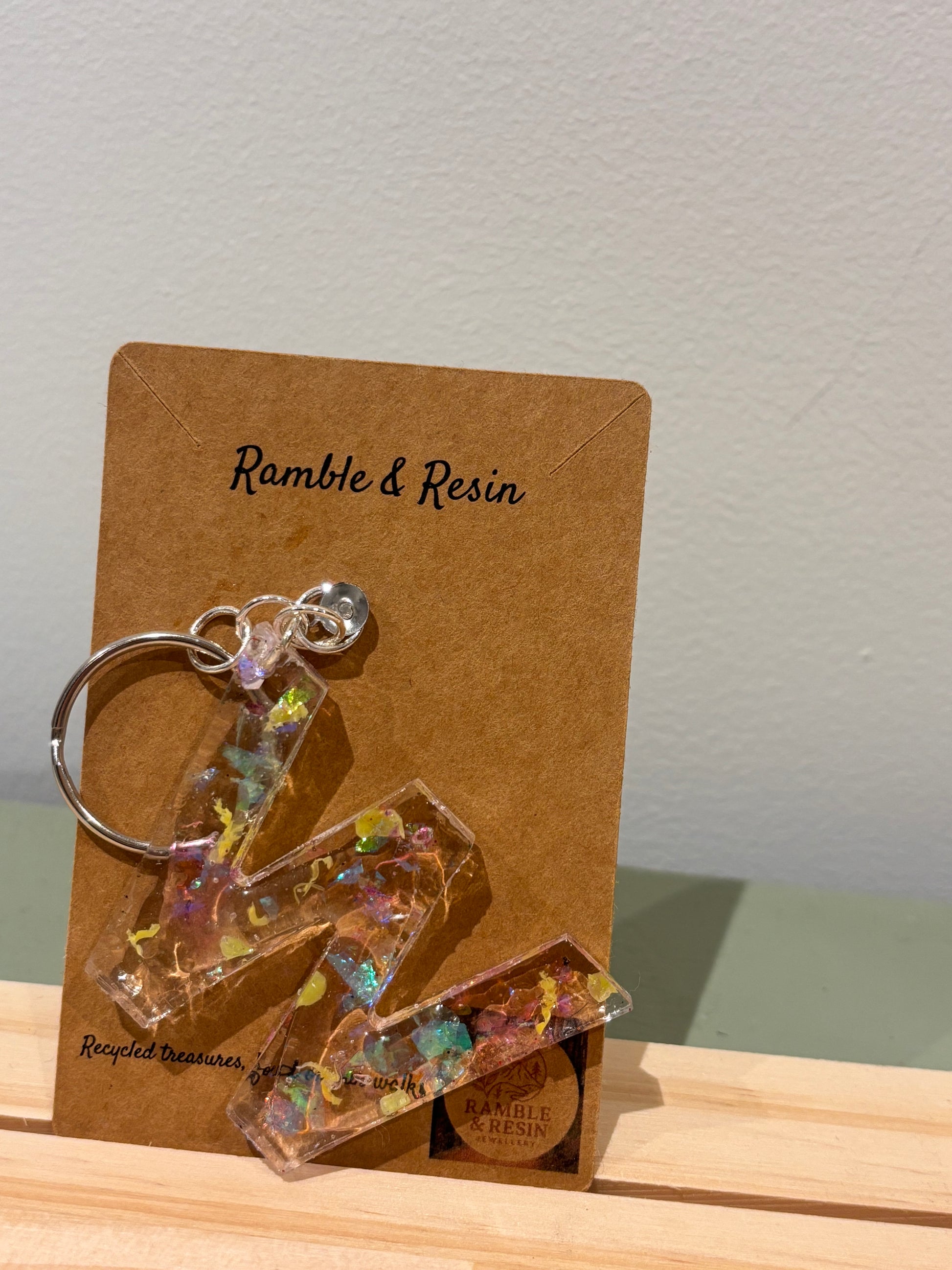 Handmade with resin and recycled materials;