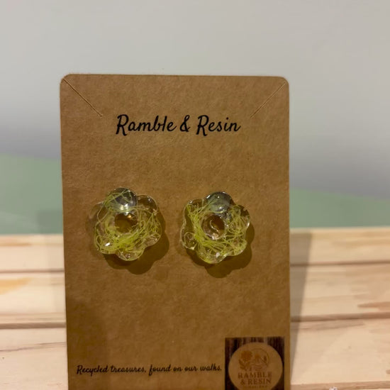 Small flower studs made with recycled lemon net packaging and resin